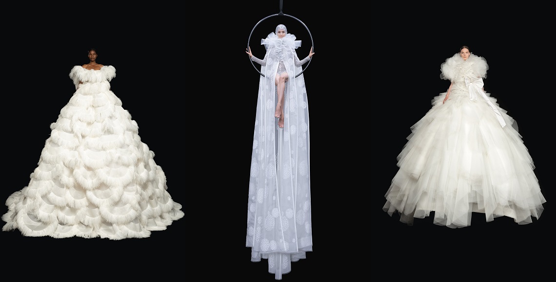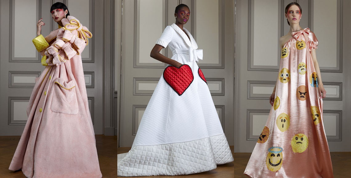 Eksperimentasi adalah key character dari Viktor & Rolf. Label ini dikenal kerap mengintegrasikan pop culture sebagai elemen dari kreasi-kreasinya. Tak terkecuali koleksi couture untuk musim ini. Salah satu perwujudannya adalah sebuah gaun yang menampilkan ragam emoticon. Selain itu, ada pula kreasi-kreasi yang menyertakan simbol hati. Emosi memang menjadi topik utama dari koleksi ini, terkhusus mengenai pengalaman yang berkaitan dengan situasi pandemi coronavirus. “We are discussing a little bit mental health and how to dress for your emotions, as well to say that all emotions are valid and necessary,” ucap mereka.