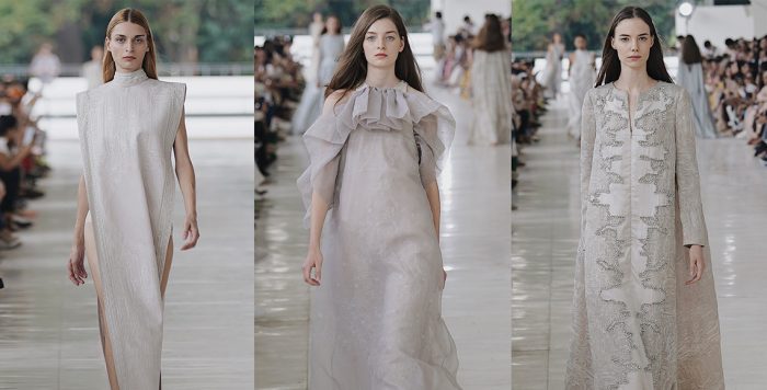 Tak mau semua itu terjadi? Semoga saja para politisi, technopreneur, ilmuwan dan akademisi, Anda, serta segenap penduduk Bumi lainnya berbagi visi dengan Sapto Djojokartiko yang menuangkan mimpinya tentang situasi masa depan manusia dan AI ke dalam peragaan busana Spring/Summer 2019. Pikiran Sapto menatap waktu mendatang dalam pendekatan harmonis. Di alam fantasinya, future civilisation adalah relasi mutual nan sustainable antara teknologi modern dan alam sebagaimana set peragaan busananya yang berlatar kombinasi gedung-gedung pencakar langit dan pepohonan rimbun. Tak hanya itu, era super-teknologi di semesta mimpi Sapto pun tidak bersifat “ikonoklastik” melainkan akomodatif dalam mempertahankan ruang bagi ekistensi nilai-nilai – termasuk estetika tradisional dari zaman-zaman sebelumnya. Tengok bagaimana siluet-siluet minimalis modern label Saptodjojokartiko pada koleksi terbarunya mewadahi kentalnya eksotika motif-motif yang menyerupai arsitektur candi-candi di Asia Tenggara maupun India.