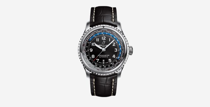 Navitimer 8 Unitime ini dirancang untuk para international traveller. Sebuah jam tangan otomatis yang menawarkan indikasi waktu dunia lengkap dengan berbagai nama kotanya, melalui jarum jam yang dapat disesuaikan dengan crown-nya. Pada jantung dari kronometer bersertifikasi COSC yang ditenagai oleh Breitling Caliber B35, gerakan pemuntir otomatis dengan dua arah ball bearing rotor dan dua barel musim semi, memberikan cadangan daya lebih dari 70 jam. 43 mm stainless steel case dengan rotating bezel dilengkapi dengan alligator leather strap.