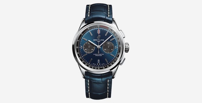 Breitling Premier B01 Chronograph 42 ini dilengkapi dengan Breitling Calibre 01 yang memantapkan dirinya sebagai salah satu gerakan arloji mekanik terbaik di dunia dengan cadangan daya lebih dari 70 jam. Desain dial yang bersih menampilkan subdial hitam yang kontras dengan penghitung menit kronograf pada jam 3 dan subdial kedua pada jam 9, Dan penunjuk tanggal pada jam 6.