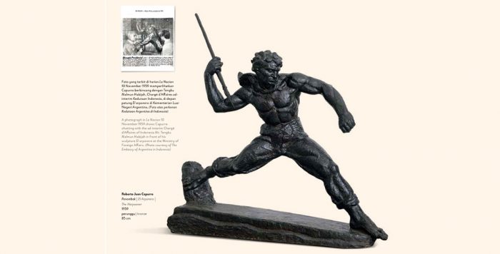 Galeri Nasional di pagi perayaan 17 Agustus tidak begitu ramai. Pintu ruang pameran dibuka sekitar pukul sepuluh. Patung “El Arponero” (1958) buatan perupa Argentina Roberto Capurro menyambut pengunjung. Berbentuk laki-laki penombak, karya ini diberikan oleh presiden Argentina Arturo Frondizi kepada Presiden Soekarno saat ia berkunjung ke Argentina pada tahun 1959. Bagi presiden pertama Indonesia itu, patung yang ia kagumi tersebut sesuai dengan semangat perjuangan bangsa. Ini menjadi sebuah cerminan bagaimana Soekarno mengekspresikan keterbukaan Indonesia dengan dunia luar.