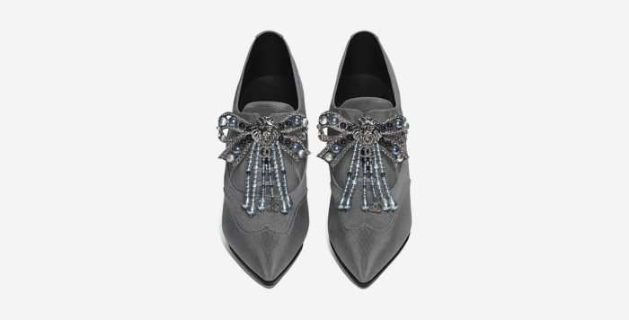 Bagaikan suatu artefak mode dari masa kerajaan Eropa, lace-up booties ini berhias pita dan manik-manik untuk tampilan yang preppy chic.