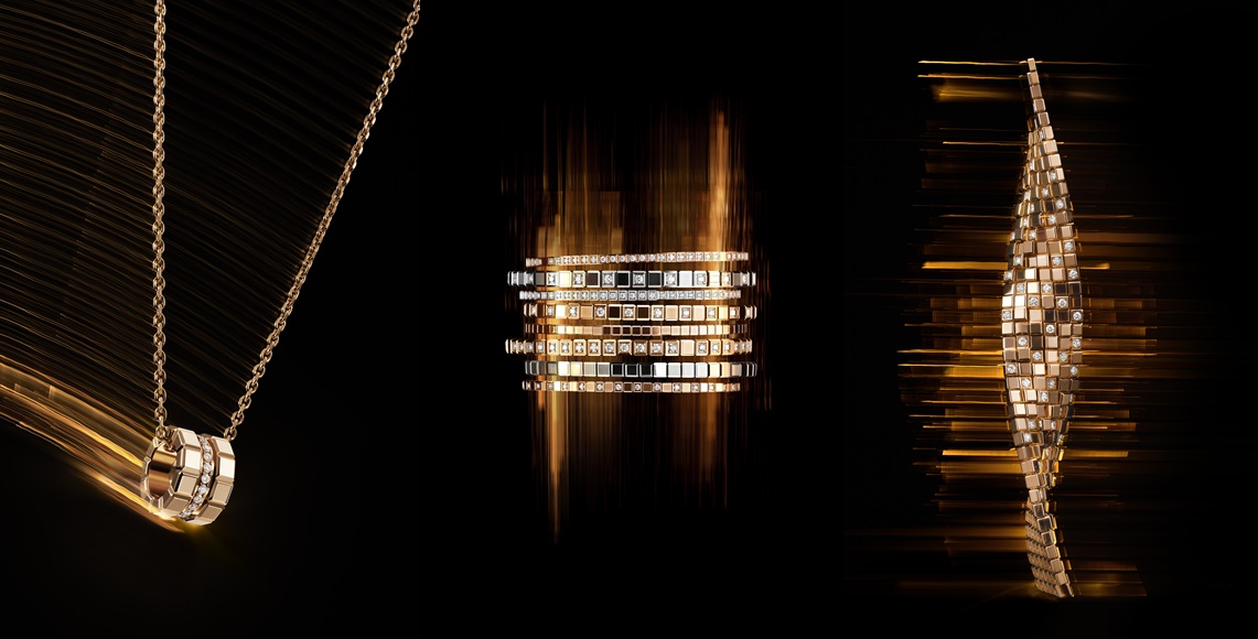 Light, shape, and resistant materials are essential elements of the Ice Cube pieces. Pada campaign ini juga, minimalisme diekspresikan sebagai art of living yang mengekspresikan simplisitas, kemurnian, dan keindahan perhiasan Ice Cube.