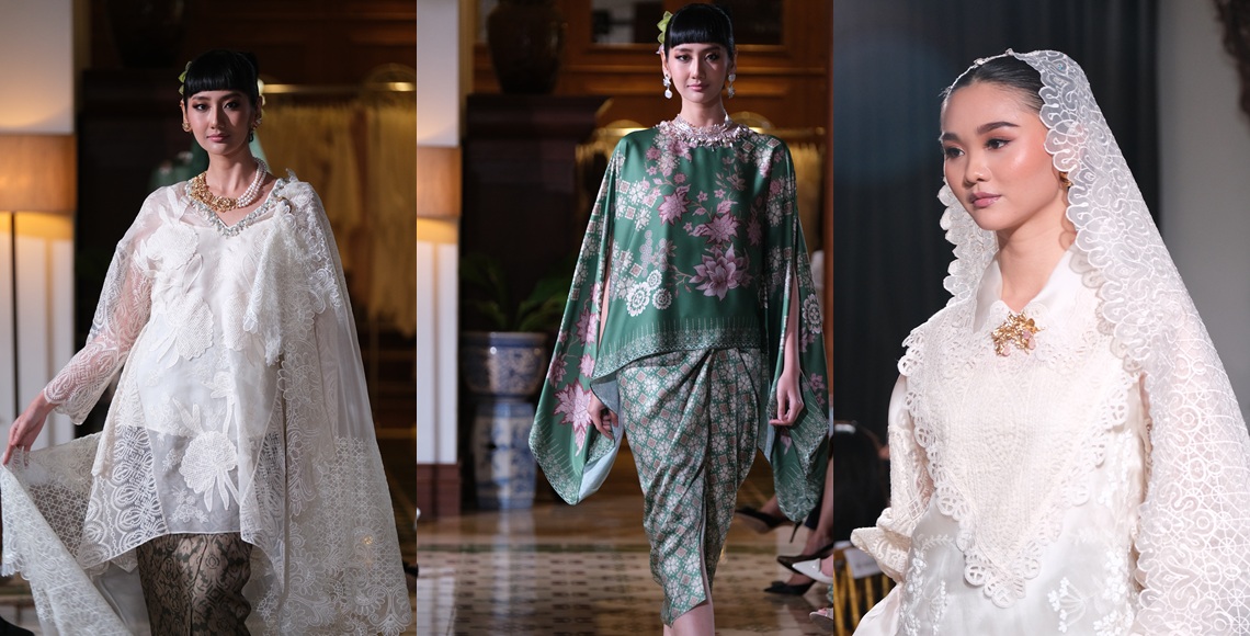 Bahan-bahan dengan warna lebih solid menampilkan motif bunga sebagai representasi tema musim. Pada beberapa kreasi lain, objek alam tersebut hadir lebih statement dalam rupa embroideries pada rancangan berbahan satin organza, Thai silk, serta shantung silk. Menjadi bagian cukup signifikan pada koleksi ini ialah rupa-rupa atasan berwarna putih yang tampak penuh romansa lewat bordir juga renda. Masing-masingnya dipadankan dengan selendang senada; sebuah rangkaian yang sangat meresonansi vibe hari raya. Kreasi-kreasi tersebut dipasangkan dengan rok sarung hingga cigareyye pants berhias print songket Bali.