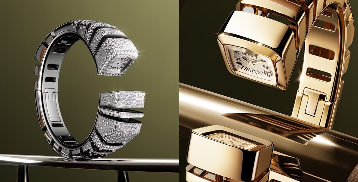 Among all Cartier’s creations this year, the new Reflection de Cartier is our most favourite. Jam tangan di ranah feminin ini memiliki desain bangle-cuff hybrid yang kontemporer. Untuk pemakaian daily, Anda bisa memilih varian plain yellow gold atau plain rose gold. Memanfaatkan quartz movement, atraksi utama kreasi ini adalah keberadaan dial jam di sisi dalam gelang dan berhadapan dengan refleksinya yang menciptakan ilusi backwards time-telling. Jika ingin yang lebih dressy, tersedia tiga varian yang dihias dengan batu-batu permata, mulai dari diamond, chrysoprases, obsidian, emeralds, Paraiba tourmalines, hingga opal dan amethyst.