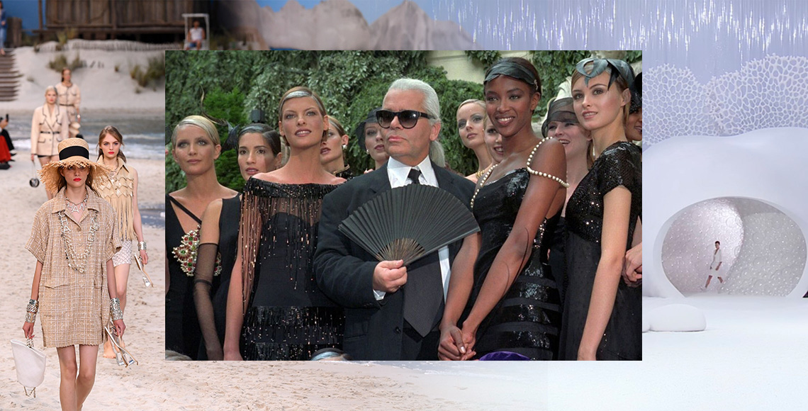Di bawah pimpinan Lagerfeld, fashion show Chanel menjadi sebuah pertunjukkan besar. Set megah dan tema unik menjadi elemen-elemen yang membuat orang menantikan setiap fashion show Chanel. Untuk Spring/Summer 2019, ia mengubah Grand Palais menjadi pantai. Pada Autumn/Winter 2015 menjadi kasino di mana para tamu VIP bermain di meja ketika fashion show berlangsung. Di Spring/Summer 2015, runway Chanel berubah menjadi jalanan Paris dengan protes feminis. ‘Chanel Shopping Centre’ lengkap dengan produk-produk supermarket bermerek Chanel “dibuka” pada Fall/Winter 2014. Untuk Spring/Summer 2012, Chanel memperlihatkan sebuah winter wonderland yang dirancang oleh arsitek ternama Zaha Hadid. Fashion show Cruise 2007 digelar di Bandara Santa Monica dengan para model yang masuk ke catwalk dari sebuah pesawat Chanel.