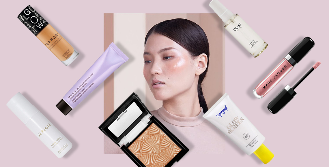 Tambahkan warna lembut pada mata dengan Too Faced Palm Palms Eyeshadow Palette, dan pada bibir dengan Marc Jacobs Beauty Enamored Hi-Shine Lip Lacquer. Then there comes the glow with Becca First Light Priming Filter and Stila Heaven’s Hue Highlighter. Sebagai finishing-nya, berikan nutrisi pada rambut dengan Ouai Hair Oil dan pada kulit dengan toner Alpha-H Liquid Gold.