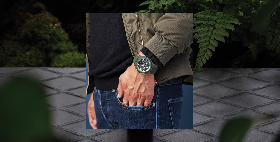 Kompleksitas akan gaya hidup modern yang penuh petualangan tergambar dengan baik di jam tangan Defy 21 Urban Jungle. Pesona warna khaki green merepresentasikan nuansa hijau tumbuhan yang kemudian dibalut dalam nuansa polished lewat penggunaan material keramik anti gores berskema matte. Ketangguhan presisi jam ini mumpuni dengan terbenamnya El Primero 9004 automatic movement untuk menampilkan 1/100th of a second. Kapasitas power reserve-nya mencapai 50 jam. Kesan intricate tercipta dari pilihan open dial dengan counters palet matte silver dan hitam. A highly precise watch in adventurous design.