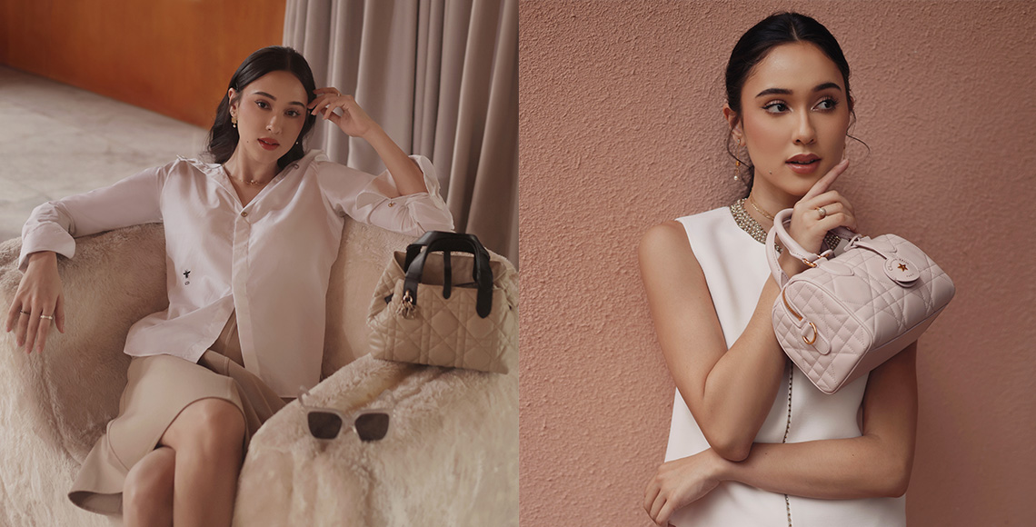 Dalam pose lain, pemain film “Imperfect” (2019) tersebut tampak memegang white and black Dior Book Tote yang pada koleksi musim ini dinamis dengan Miss Dior Allover Embroidery. Padanan aksesori itu ialah jaket dan flare pants material cotton denim dalam warna putih dan berhiaskan Blue Miss Dior Graffiti Motif. Attitude dari look ini secara tepat mewakili ide koleksi yang terkait dengan latar kelahiran lini Miss Dior di masa silam.