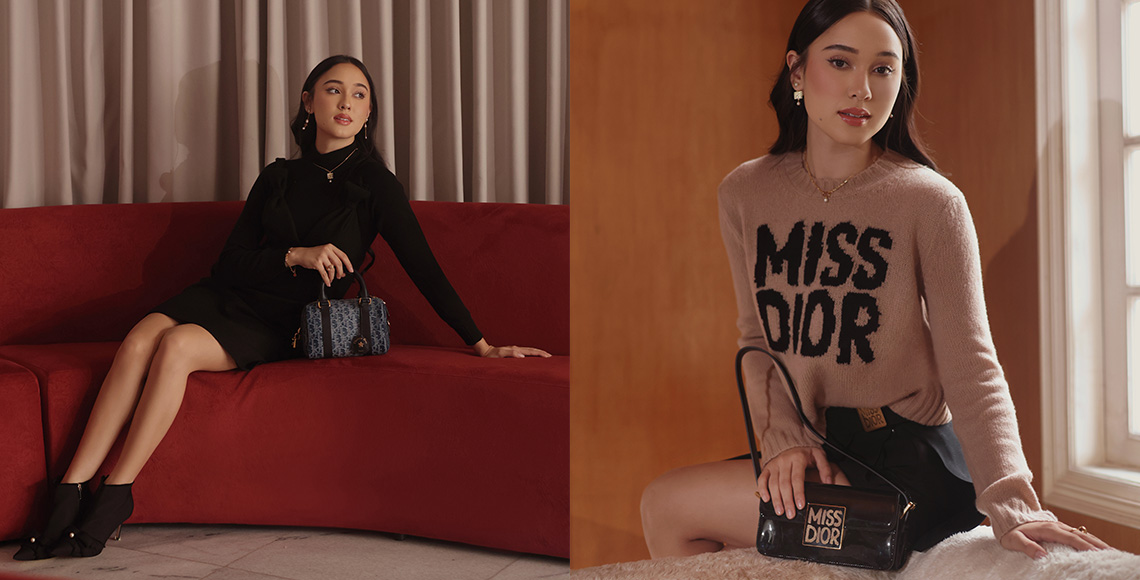 Continue with the photoshoot, she then sat in red sofa wearing a pretty little black dress with knot accents on its straps. Anggun dengan kreasi-kreasi perhiasan, tampilannya dilengkapi dengan handbag Groove berbahan jacquard motif Oblique. Selama sesi obrolan yang telah berlangsung sebelumnya, ia pun berbagi perihal sense of style. Pelaku industri sinema yang mengaku punya interest dan concern terhadap isu recycling, pendidikan, dan women’s right ini menyatakan bahwa ia menyukai busana-busana dengan cutting yang simpel dalam nuansa chic dan classy. “Aku suka dengan warna-warna cerah, and honestly I’m a type of person who doesn’t like to show too much skin if I don’t need to” tambahnya.
