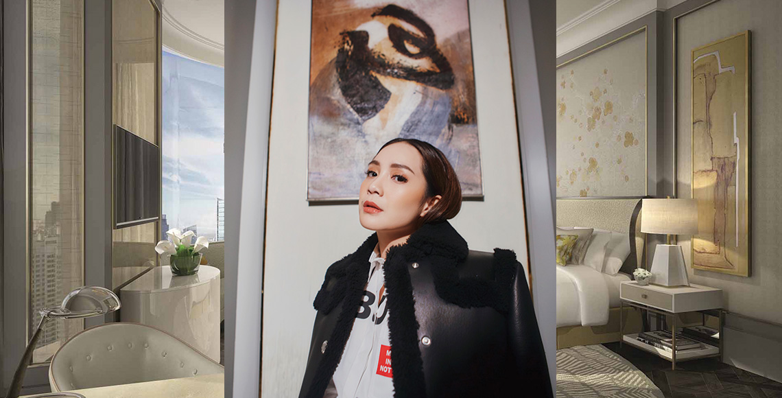 Duduk di kursi dalam suatu ruang bernuansa dominan abu-abu dan putih, Nagita Slavina meradiasi urban feel dalam balutan rancangan-rancangan Burberry. But here in this frame, she is not the typical city girls. She celebrates heritage. Kombinasi busananya adalah Horseferry print oversized shirt putih dengan map print pleated skirt yang menampilkan peta dunia abad ke-18. Menjinjing logo graphic pocket bag yang terinspirasi dari arsip-arsip sang rumah mode Inggris, identitasnya sebagai bintang industri hiburan tanah air terepresentasi secara bold lewat leather and shearling jacket hitam berskema press-stud closure yang digantungkan di pundak.
