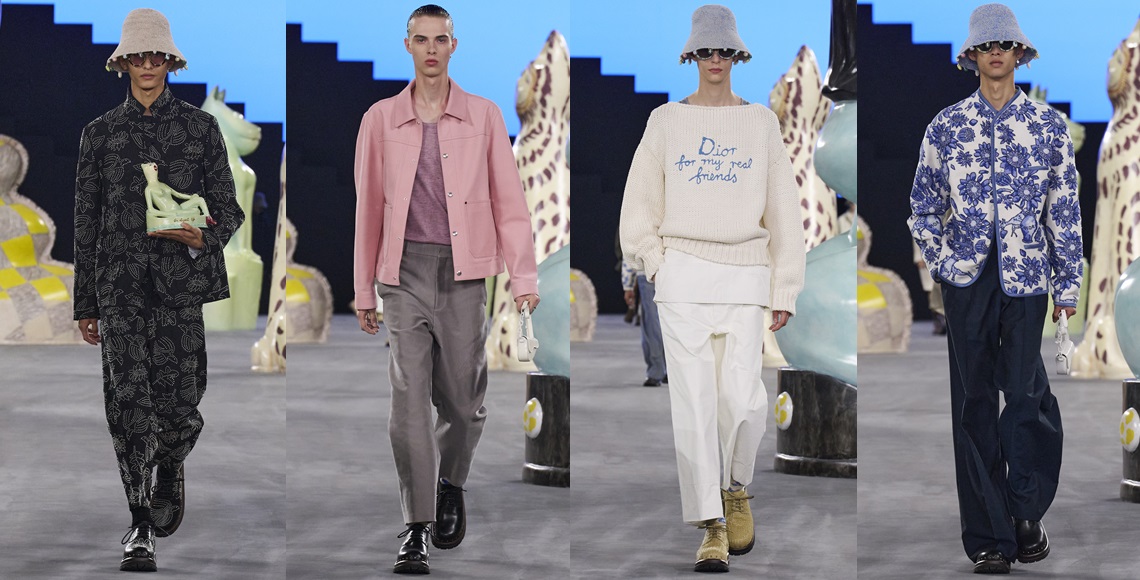 “In this collection, I wanted to concentrate on elements of craft, the skills of the ateliers and artisans who work for this house: this is the lifeblood of Dior,” ujar Kim Jones tentang koleksi ini. Membawa kreasi ceramicist Afrika Selatan Hylton Nel ke dunia savoir-faire Dior, Jones kembali menggabungkan kode luxury, utility, workwear, dan haute couture. Dalam momen yang sama, siluetnya mengekspresikan playfulness dan praktikalitas. Outerwears arrive in rounded volumes, whilst its patterns reference the works of Hylton Nel. Sebuah rancangan Yves Saint Laurent untuk Dior di tahun 1958 direalisasikan untuk pertama kalinya dalam koleksi ini, bersama dengan kreasi “Negatif” dari koleksi Fall/Winter 1960 yang diinterpretasikan kembali menjadi mock ceramic structure yang membutuhkan waktu berbulan-bulan untuk dikreasikan.