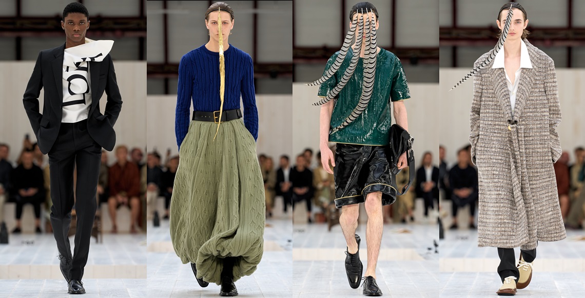 Judul koleksi ini adalah “A Radical Act of Restraint”. Dalam kreasinya, Jonathan Anderson bekerjasama dengan Peter Hujar, Charles Rennie Mackintosh, Carlo Scarpa, Susan Sontag, dan Paul Thek. Masing-masing seniman tersebut mengejar kebebasan kreatif dengan radikal, mengubah objek-objek sehari-hari dari biasa menjadi luar biasa. Headpiece bulu menutupi wajah para model, namun melengkapi kreasi ready-to-wear Anderson dengan sempurna. Some of our favourite looks include the knitted balloon trousers, a mother-of-pearl top, plaid capes, and glistening sets.