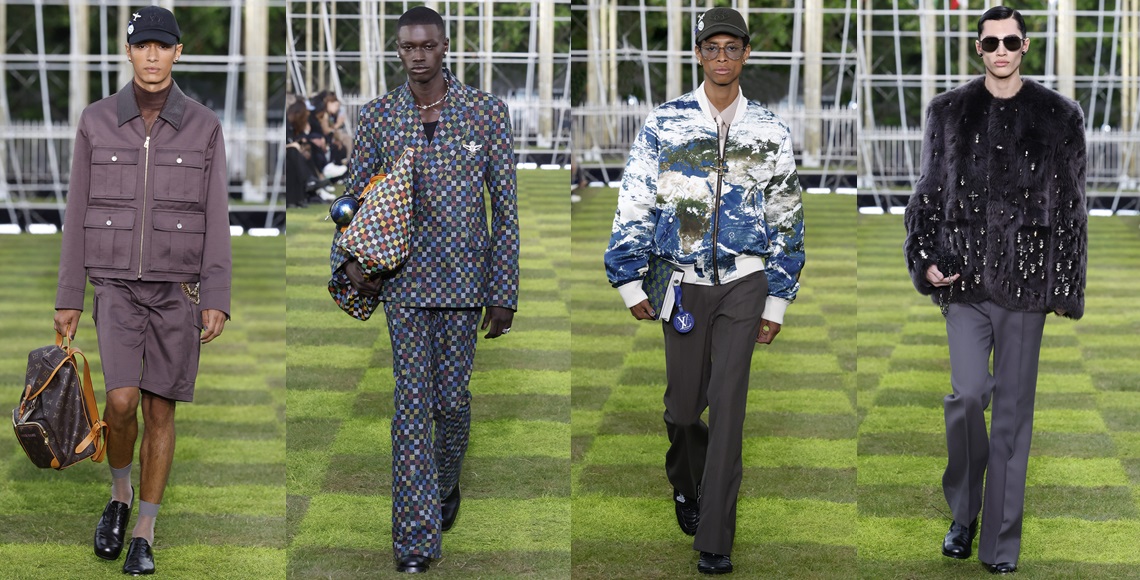 From Paris to the world. Dengan mindset global, Pharrell Williams mempersembahkan koleksi yang menyatukan diversitas para warga dunia. With discernment, savoir-faire and travel as their shared values, the community of LVERS reimagines their future. Kode-kode desainnya terinspirasi dari mereka yang mengelilingi dunia, seperti sang pilot atau sang diplomat. Dalam suatu perjalanan, kenyamanan terpancarkan melalui siluet sportswear. Embossed Branded Monogram tampil pada kreasi ready-to-wear dan motif Damoflage mengambil bentuk baru sebagai Snake-o-Flage dan Map-o-Flage.