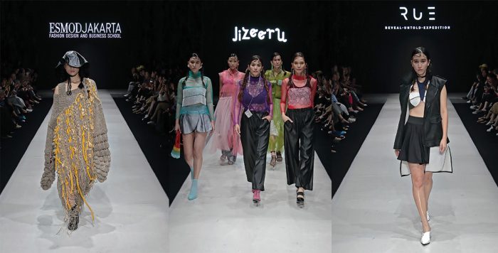 Dengan tema “Woman Strength” Esmod Jakarta menampilkan koleksi Class of 2018 dengan ciri khas street style. Beberapa koleksi pakaian dengan desain deconstructed mencerminkan kreativitas para desainer muda berbakat di Indonesia. Selain itu, ESMOD Jakarta juga mengajak dua orang alumniya. Savira Lavinia, alumni Esmod Jakarta tahun 2013 membawa brand activewear “RUE”. Selanjutnya alumni Esmod Jakarta tahun 2011, Gisela Febriana Juwowo juga ikut berpartisipasi membawakan brand miliknya “JIZEERU” dengan tema “Earthy Delight” yang terinspirasi dari triptych, lukisan Hieronymus Bosch. Dengan hentakan musik bergenre house, mencerminkan semangat generasi muda masa kini.