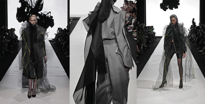 Desain versatile Hakim kembali bertemu dengan kreasi embellishments AVA Prologue untuk sebuah persimpangan antara dua sifat kontras. Struktur dengan kelembutan, simpel dengan dekoratif, daytime wear dengan evening wear. Ide kebebasan mengambil centre stage dengan rok mengembang, lengan asimetris, kain yang menjuntai, dan MAHA beads yang menghiasi setiap look-nya. Melalui potongan loose dan relaxed sang perempuan modern yang praktikal muncul di benak kami. Mereka berjalan dengan ringan di runway, menunjukkan bahwa mereka mengenal benar akan rute yang sering disebut dengan ‘kehidupan’. Look yang lebih menonjolkan lekuk tubuh seperti bustier dan bodysuit merefleksikan kekuatan mereka, dibawakan dengan karismatik oleh model-model ternama. Berbagai ide dieksperimenkan di sini, membawakan sebuah persona seseorang yang tegas dan tak takut menjelajah.