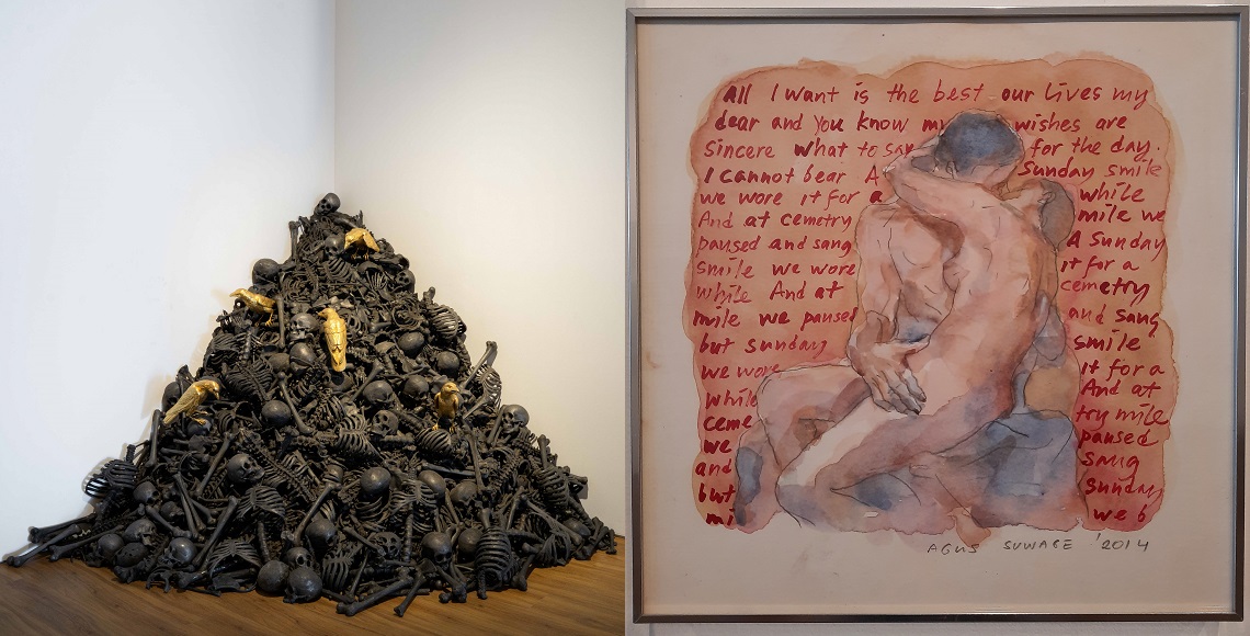 As for our recommendation, you might want to stand a little longer to enjoy “100 Drawing dan 720 hari” (2012-2014). Karya ini bagai buku harian Suwage selama 2 tahun; begitu personal. Salah satu dari gambarnya menampilkan sepasang kekasih tanpa busana berpadu asmara dengan latar kalimat romansa. Sebagiannya berbunyi, “All I want is the best our lives my dear and you know my wishes are sincere…” – Suwage in his privately romantic life scene.