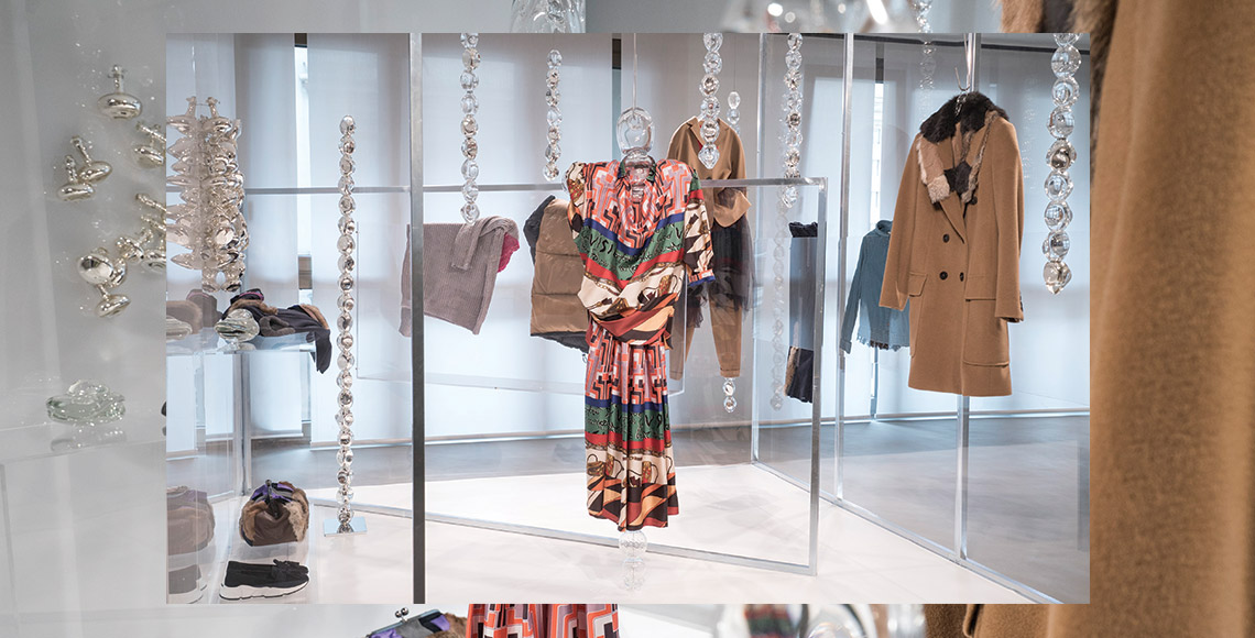 Koleksi busananya tercipta terlebih dahulu. Instalasi saya untuk Weekend Max Mara hadir dalam sebuah kubus di ruang showroom Milan. Kubus tersebut transparan dan berisi koleksi Chaotic Elegance dan karya-karya kaca saya. Di dalam kubus terdapat pahatan menggantung dari langit-langit; yang menjadi pusatnya adalah pahatan bentuk salib dan berperan sebagai lay figure. Di sana terdapat juga patung dinding, yang terbuat dari banyak “mata cahaya” di kaca cermin.