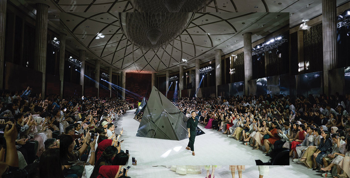 Pada ke sekian kalinya desainer yang akrab disapa Sapto itu menghelat fashion show tunggal, crowd yang hadir menjadi cerminan credential perjalanan karirnya yang belum lama ini melewati dekade pertama. Malam itu, A-list fashion insiders – termasuk di antaranya wajah-wajah tenar layar kaca maupun layar lebar – menempati row kursi dengan pemandangan deretan piramida kaca di tengah runway. Tiba waktunya tata lampu bermain dan musik racikan DJ Jonathan Kusuma menghentak, mata tetamu mulai bergerak mengikuti arah langkah para model. Hal pertama yang muncul di benak: is this Sapto’s?
