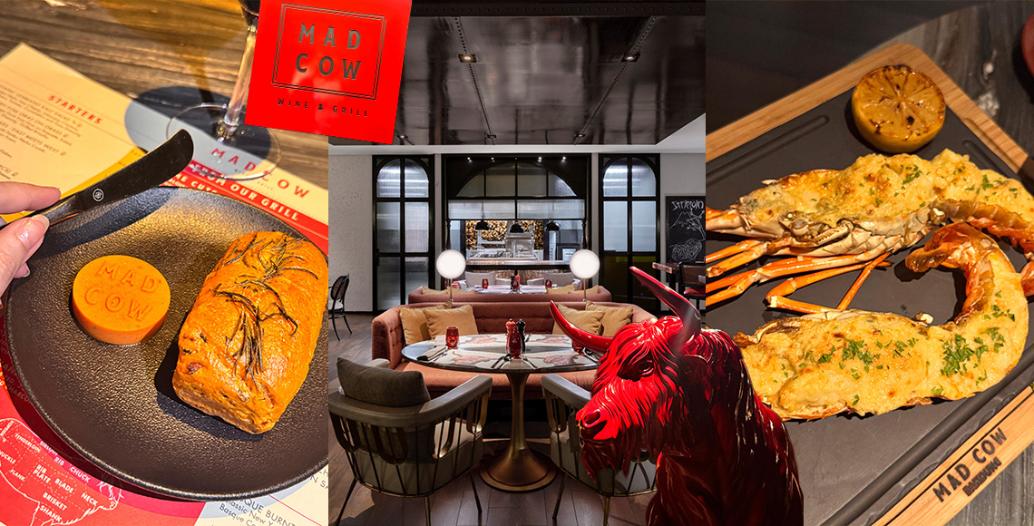 Malam itu saya memutuskan untuk makan di hotel saja. Kebetulan di lantai 17 ada Mad Cow, fine dining restaurant yang temanya 1920s vibe. Begitu welcome bread datang: Basil dan Tomato Focaccia dengan Tomato Butter, langsung membuat saya berpikir, “good bread is always a good sign.”