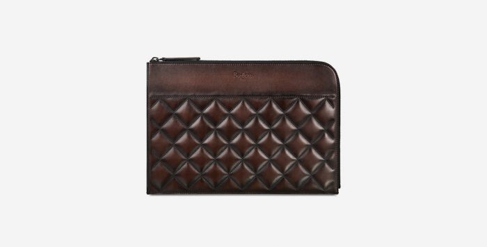 Variasi XL dari Nino pouch yang ikonis, dapat menyimpan PC, tablet, maupun dokumen-dokumen berukuran A4. Dengan eksterior quilted leather dilengkapi dengan kompartemen internal padded untuk memastikan keamanan untuk perangkat elektronik.