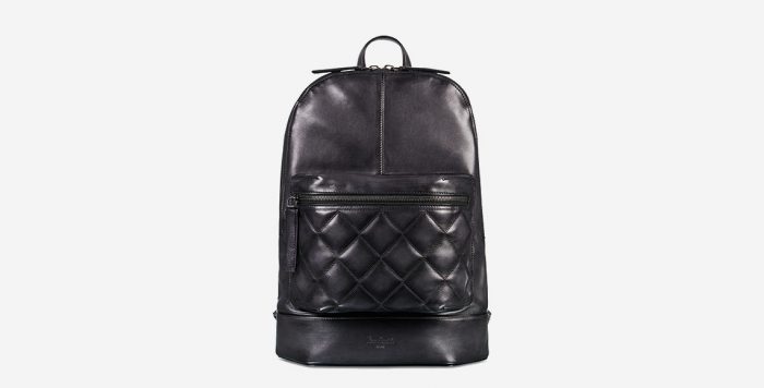 Backpack berukuran sedang terbuat dari kulit dengan inside padded pocket untuk proteksi pada perangkat elektronik.