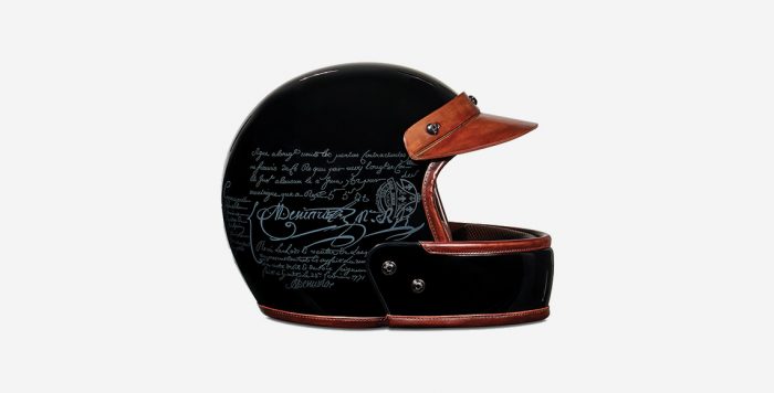 Helm ultralight menggabungkan serat karbon dengan pola Scritto untuk proteksi terbaik serta pinggiran yang di garis bawahi dengan kulit Venezia. Helm serbaguna yang nyaman dan pas mencakup serangkaian luar aksesori (shield, visor, dan leather eyeshade).