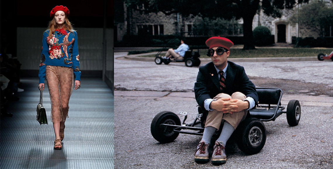 Having something in common in directing method, both Coppola and Anderson surely have certain trademark to support their fundamental styles. Sofia Coppola’s main roles often express their personal characteristic in a bold fashion statement, making her influence on fashion remarkably strong. This not only comes from the heroines in her movies, but also the well-known collaboration with Louis Vuitton, where she designed several of their bags in the Spring/Summer ’16 collection. “Designing a bag and directing a film involve the same approach – it’s like creating a character in a story and envisioning the universe that the character belongs to,” she once said. In her debut film, “The Virgin Suicides”, Sofia dressed the poignant, mischievous and melancholy Lisbon girls in colourful bandeau tops and managed to make their strict Catholic school uniforms look surprisingly chic too. The plain dresses they wore to their prom even inspired Rodarte Autumn/Winter ‘14 theme. Kristen Dunst’s rebelliously girly outfits in “Marie Antoinette” also received controversial comments for its mixed period costumes and modern music. It was something that’s never been done before in a classical themed movie.